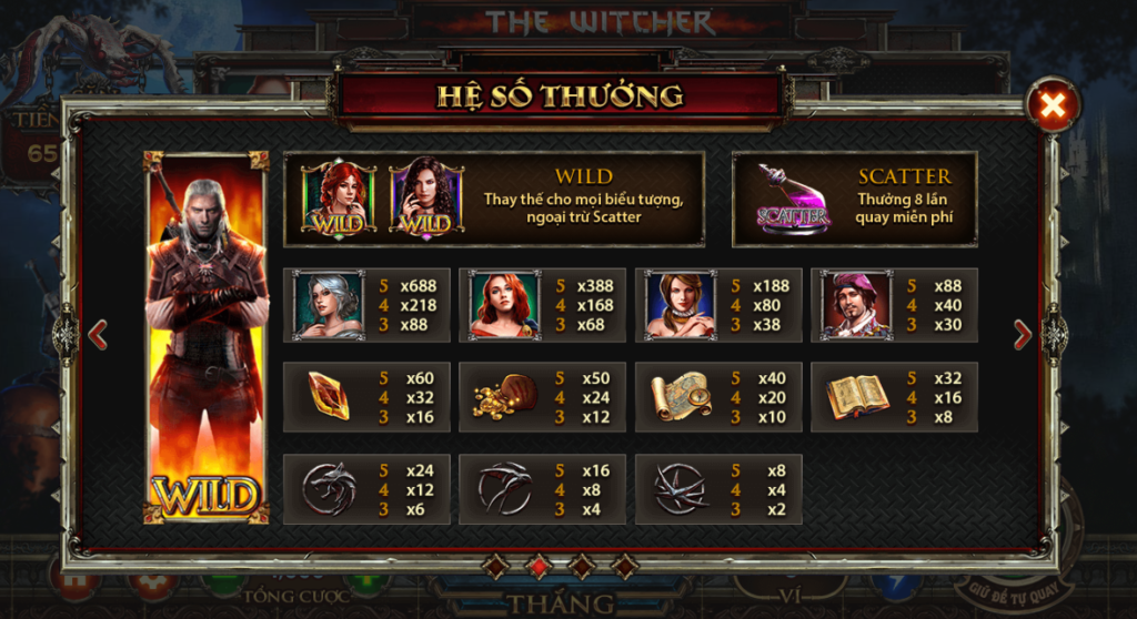 Hệ số trúng thưởng của The Witcher may88 vip cụ thể như sau: