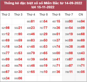 💰 Thống kê số đầu giải đặc biệt miền Bắc từ 13/09/2022 đến 14/11/2022: