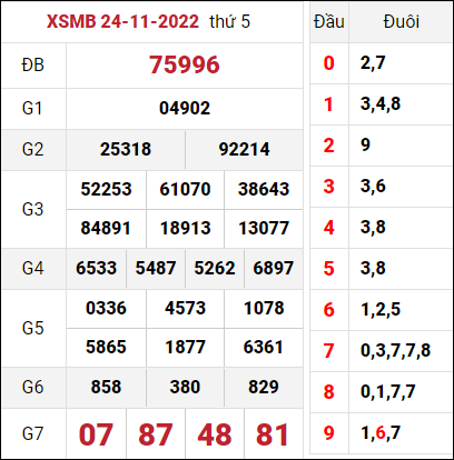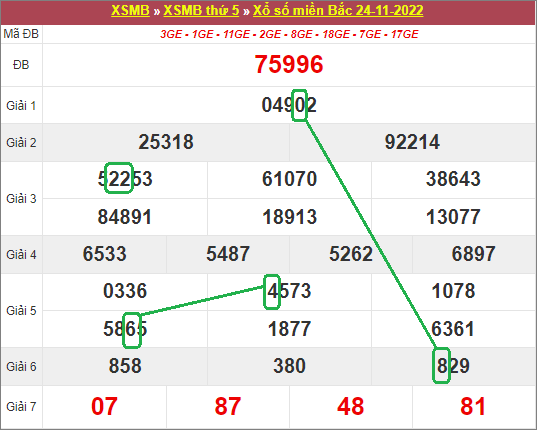 3. Thống kê lô tô miền Bắc ngày 25/11/2022 thứ sáu: