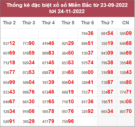 💰 Thống kê số đầu giải đặc biệt miền Bắc từ 23/09/2022 đến 24/11/2022: