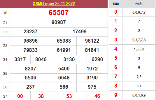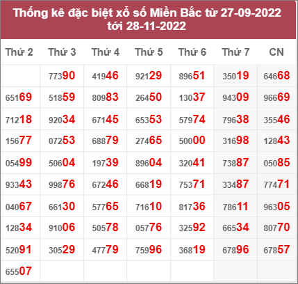 💰 Thống kê số đầu giải đặc biệt miền Bắc từ 27/09/2022 đến 28/11/2022:
