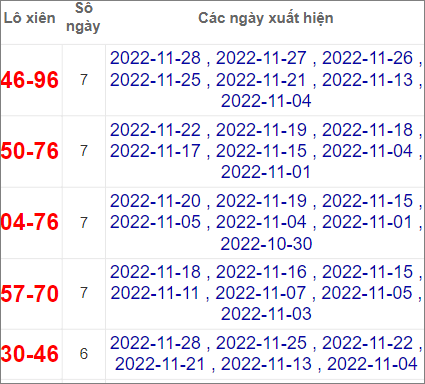 3. Thống kê lô tô miền Bắc ngày 29/11/2022 thứ 3: